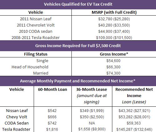 (In the case of the Chevrolet Volt and Nissan Leaf, for example, both manufacturers will factor the credit into a special lease rate.) Additional tax credits, deductions and incentives may be ... View This Document